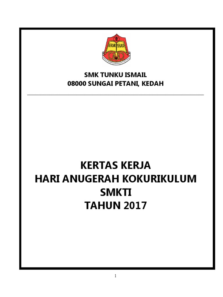 Kertas Kerja Hari Anugerah Kokurikulum : Ianya bertujuan memberi pengiktirafan kepada para pelajar yang aktif dalam bidang kokurikulum.
