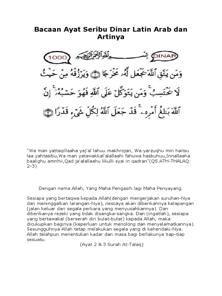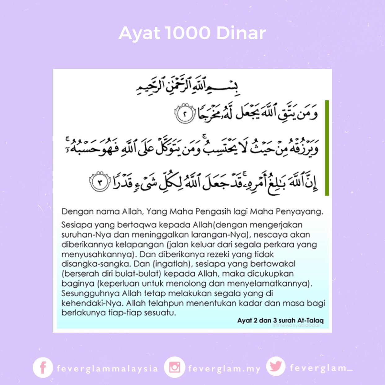 ومن يتق الله يجعل له مخرجا ويرزقه من حيث لا يحتسب ومن يتوكل على الله فهو حسبه إن الله بالغ أمرهق. Semoga manfaat dan hikmah bagi. Apabila anda memahami rahasia amalan seribu dinar, maka anda akan mengalami banyak keajaiban dalam hal rezeki dan kekayaan. Lafas niat puasa dalam rumi. Ayat seribu dinar berserta maksudnya.