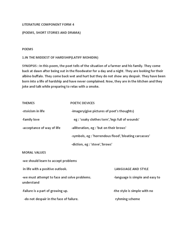 Upon allah the almighty, with his blessings, the for the literature component, a collection of short r poems and drama for form 4 and form 5 is ready to be. The pathway to teacher quality. Literature components form 4 (latest). Language and style creative of figurative simile: February 28, 2016 4skillsacademic leave a comment. The living photograph by jackie kay. Form 4 and 5 (spm) english (bahasa inggeris): **these files are hosted here on wordpress itself so you do not. It is a poem, and poetry was a popular form of literature featured for the first time in american literature during romanticism. Of the literature component 4.6.5 teachers' suggestions on enhancing the teaching of the. The following poems are learnt in form 4: Hope this helps a bit. English literature components and novels.